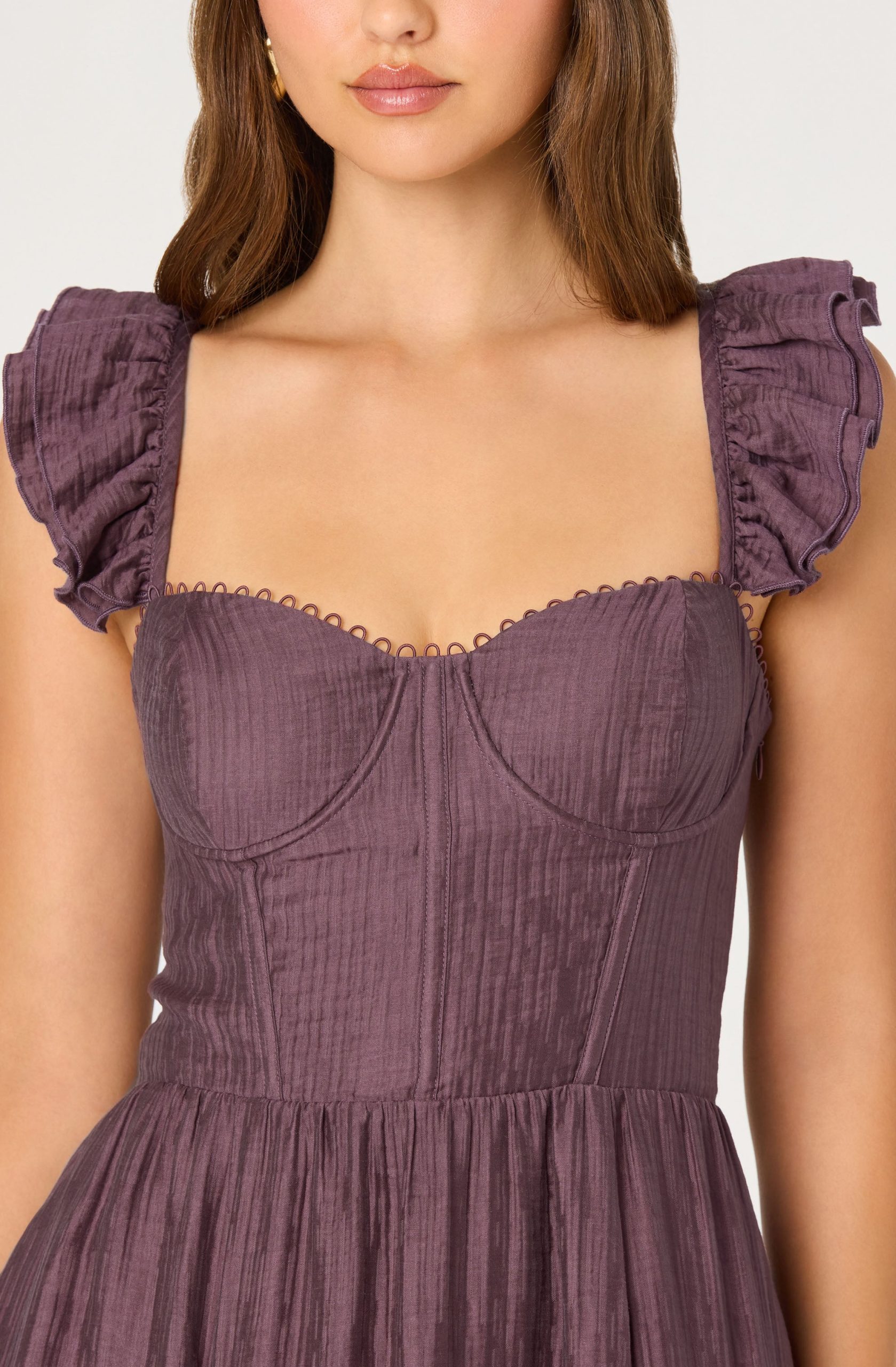 - Ruffle sleeves. bustier midi dress