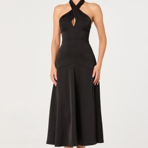 - Satin ruffle midi dress